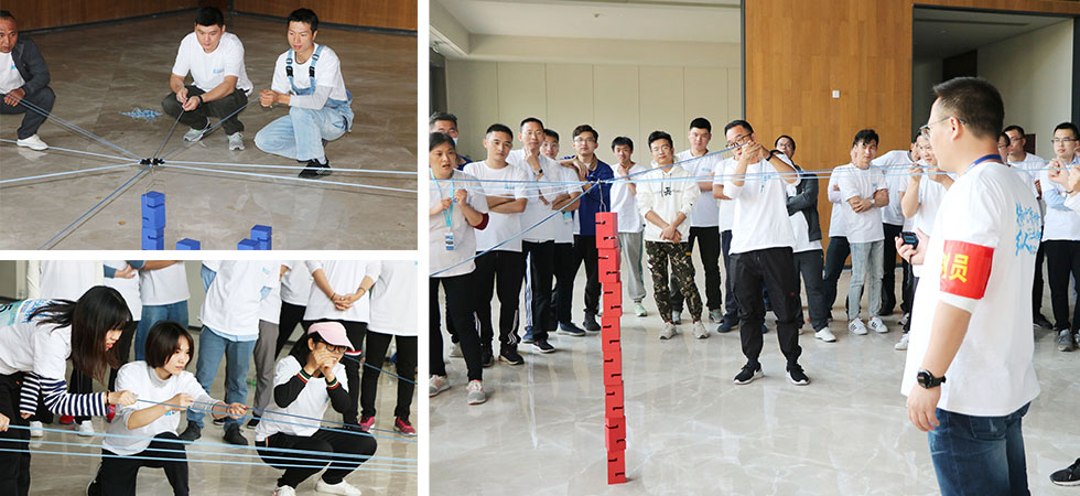 “左一点”、“轻轻放”、“拉一拉”……八根绳子围一圈,小心翼翼堆砌成塔,8个人齐心协力、配合默契才能成功。合力建塔团队赛既需要眼力、速度,又要够细心、有默契,不塌不倒,又稳又快,才能获胜!