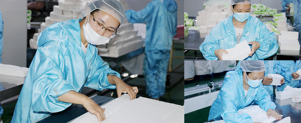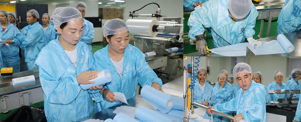 比速度、比产量、更比质量,只有产品保质保量才能提效增收!现场检验人员根据质检标准将每一个产品进行“再检查”,确保符合客户要求。