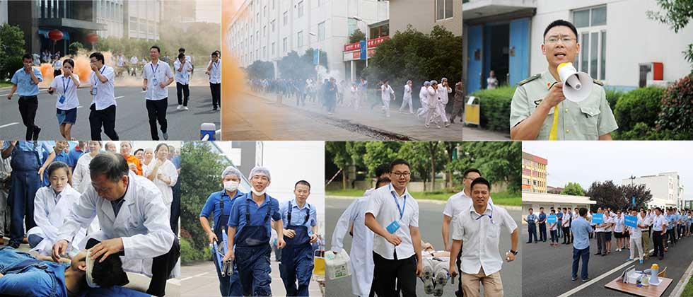 6月23日上午,北厂区近半小时的消防演习活动率先打响,公司安全员钟新华担任现场指挥,对逃生及救援过程中应注意事项进行了全程讲解,特邀的王站长也在技术方面提出相关建议。按照预案设定,三车间沈聪第一个发现火情并报火警,按报警器。随后各参演小组迅速到达任务区,组织人员疏散以及员工自救,5分钟内全部到达安全区域集合,撤离时“被困火灾现场”的一人被及时救援,且医护示范人员现场演示了伤口处理、包扎等一系列救护措施。