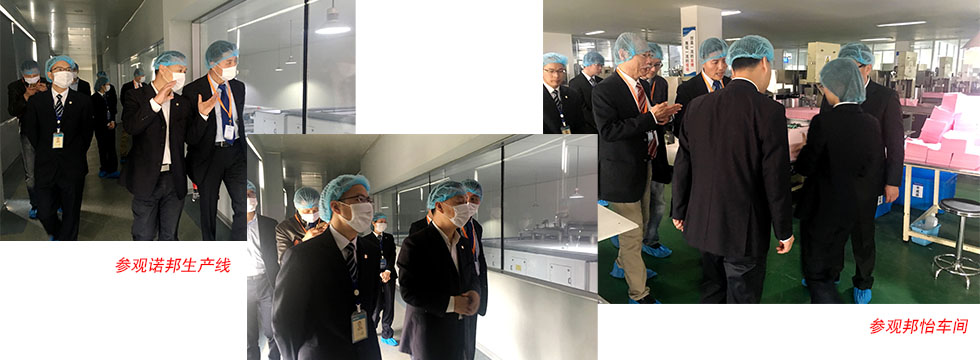 2017年4月6日9时30分,老板集团总裁赵继宏携日本东京投资商会常务理事董延玉、日本大学教授酒井茂孝、项目总监东秋宏先生一行莅临诺邦股份进行参观交流,诺邦副总经理龚金瑞、董事会秘书陈伟国等人员一同进行了接待。