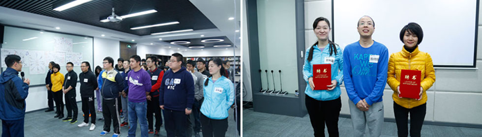 上午9:00,由公司董事总经理、赋力企管王景民老师为诺邦学堂揭牌,在热烈的掌声中,诺邦学堂正式宣告成立,并宣布授予行政服务中心主任陈伟国同志兼任学堂校长、人力主任兼任学堂副校长、培训专员金静担任学堂班主任,且分别颁发聘书。