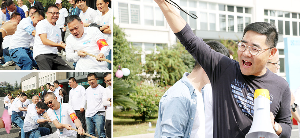 助威、加油声,如雷贯耳振奋人心,参赛队员们紧握长绳、团结一心,卯足劲拼命往后拉。9支参赛队伍,个个斗志昂扬、咬紧牙关、坚持到底;所有观赛人员,不分中心自发组成啦啦队,高喊加油,呐喊声响彻云霄。