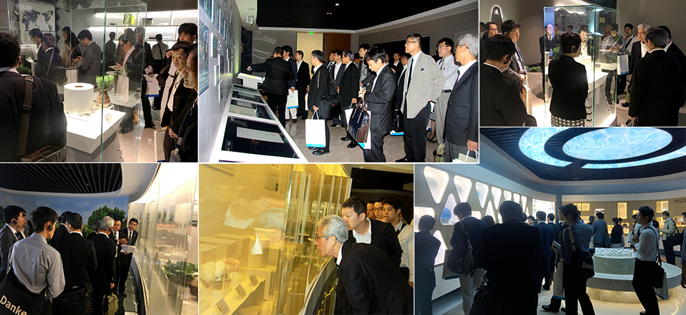 欣赏了杭州城市宣传片与诺邦股份宣传片后,参观团一行在张总陪同下参观了诺邦股份“上善若水”全球非织造材料发展主题馆。本展馆是诺邦倾力打造的展示非织造材料行业文化发展与企业形象展示基地,展厅分泉、溪、湖、海四个区域,分别为序厅、企业历史发展、企业文化、行业产品展示、企业资质荣誉、销售网络、行业历史发展、产品展示七个部分。整个主题馆以“水文化”为主线、核心,寓意深远。首先,表达了水刺工艺非织造技术及万物由小而大的发展演变过程;其次,非织造材料行业的历史发展源远流长,至今延伸至各个领域,诺邦希望行业未来拥有无限广阔发展前景;最后,诺邦会秉承“让源于自然的每一根纤维回归天更蓝水更清的世界”的企业使命,为做一个极具责任感的环保型企业而不断努力。